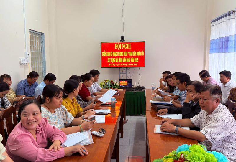 Sáng ngày 29/10/2025, tại hội trường Ủy ban nhân dân xã Định Mỹ, Ban Chỉ đạo Công tác Gia đình và Phong trào “Toàn dân đoàn kết xây dựng đời sống văn hóa” xã tổ chức hội nghị triển khai kế hoạch thực hiện phong trào năm 2025.