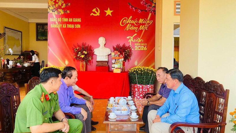 ĐOÀN CÔNG TÁC XÃ ĐỊNH MỸ THĂM, CHÚC TẾT XÃ THOẠI SƠN NHÂN DỊP TẾT NGUYÊN ĐÁN BÍNH NGỌ 2026