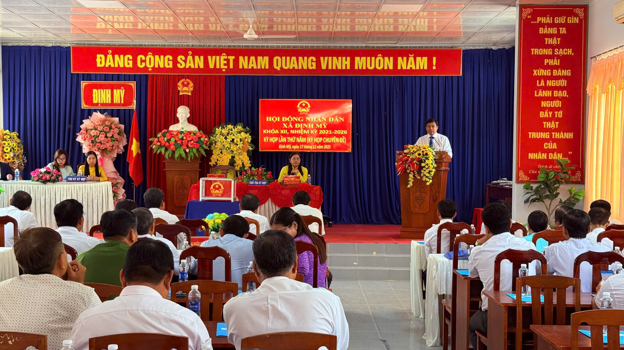 Chiều ngày 17/12/2025, Hội đồng nhân dân xã Định Mỹ khóa XII, nhiệm kỳ 2021 – 2026 tổ chức Kỳ họp thứ 5 (kỳ họp chuyên đề). Kỳ họp do ông Trần Thanh Hải – Bí thư Đảng ủy, Chủ tịch HĐND xã và bà Dương Triết Minh – Phó Chủ tịch HĐND xã chủ trì.