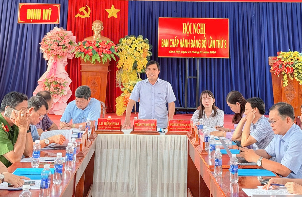 Sáng ngày 21/01/2026, Đảng ủy xã Định Mỹ tổ chức Hội nghị Ban Chấp hành Đảng bộ xã lần thứ 8, nhiệm kỳ 2025 – 2030. Đồng chí Trần Thanh Hải – Bí thư Đảng ủy, Chủ tịch HĐND xã Định Mỹ chủ trì hội nghị.