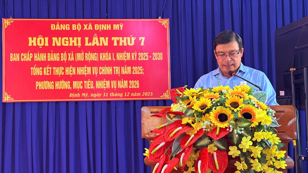 Sáng ngày 31/12/2025, Ban Thường vụ Đảng ủy xã Định Mỹ tổ chức Hội nghị Ban Chấp hành Đảng bộ xã lần thứ bảy (mở rộng) nhằm tổng kết thực hiện nhiệm vụ chính trị năm 2025 và đề ra phương hướng, nhiệm vụ năm 2026.