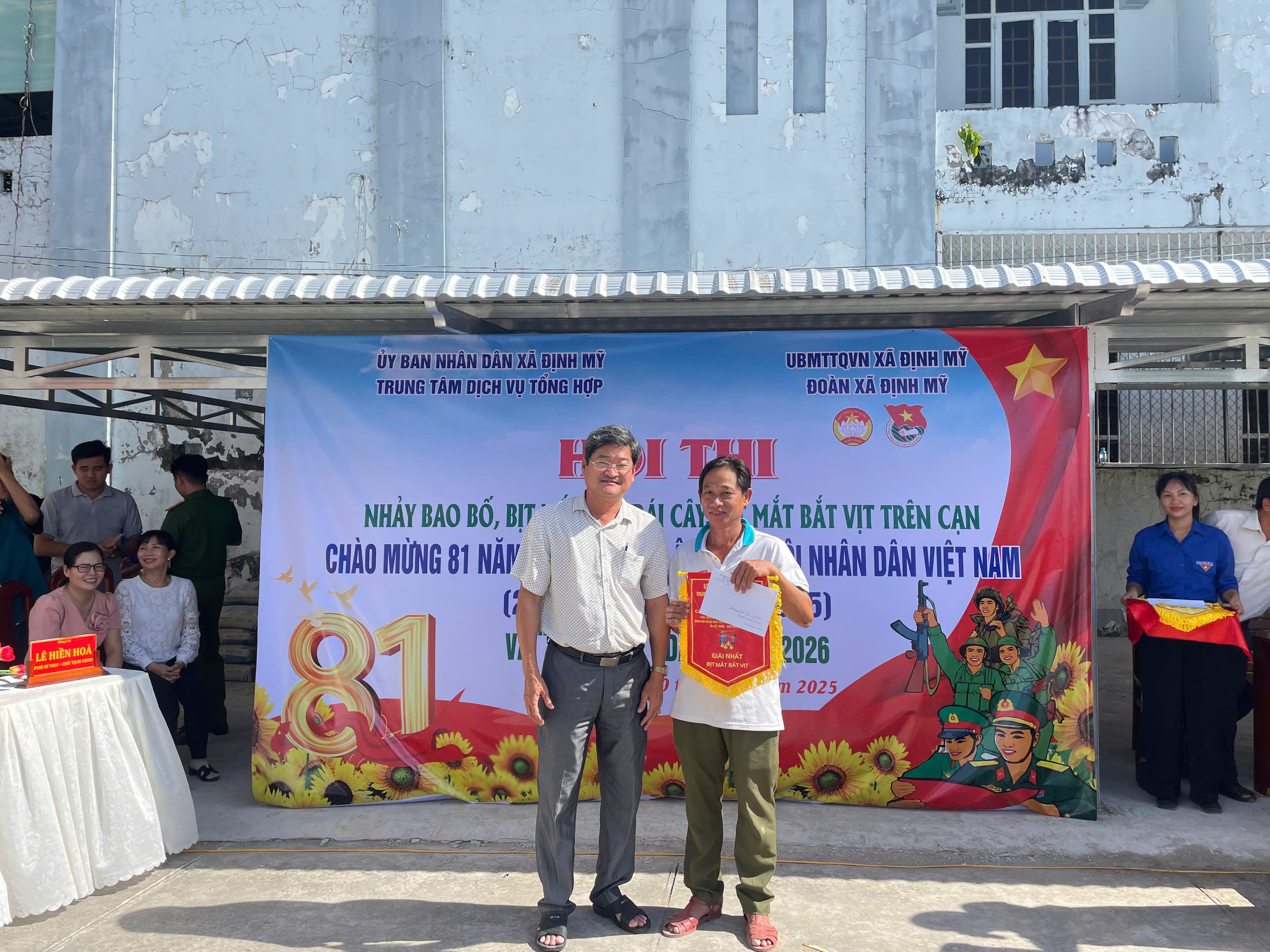 Hòa trong không khí vui tươi, phấn khởi của toàn Đảng, toàn dân và toàn quân hướng về kỷ niệm 81 năm Ngày thành lập Quân đội nhân dân Việt Nam (22/12/1944 – 22/12/2025), đồng thời lập thành tích chào mừng các hoạt động Tết Quân – Dân năm 2026 với chủ đề “Đoàn kết Quân – Dân”. Sáng ngày 20/12/2025, tại trụ sở UBND xã Định Mỹ, Xã Đoàn Định Mỹ phối hợp Trung tâm Dịch vụ tổng hợp xã tổ chức chương trình “Hội thi trò chơi dân gian”. Đến dự có ông Lê Hiền Hòa – Phó Bí thư Đảng ủy, Chủ tịch UBND xã Định Mỹ; bà Dương Triết Minh – Phó Chủ tịch HĐND xã; ông Nguyễn Hoàng Năng – Chủ tịch Ủy ban MTTQ Việt Nam xã, cùng đại diện các ban, ngành, đoàn thể. Hội thi thu hút sự tham gia của 30 đội thi đến từ 15 ấp, 12 điểm trường, lực lượng Công an, Quân sự xã và Đoàn cơ sở Trại giam Định Thành.