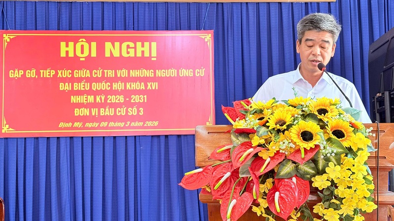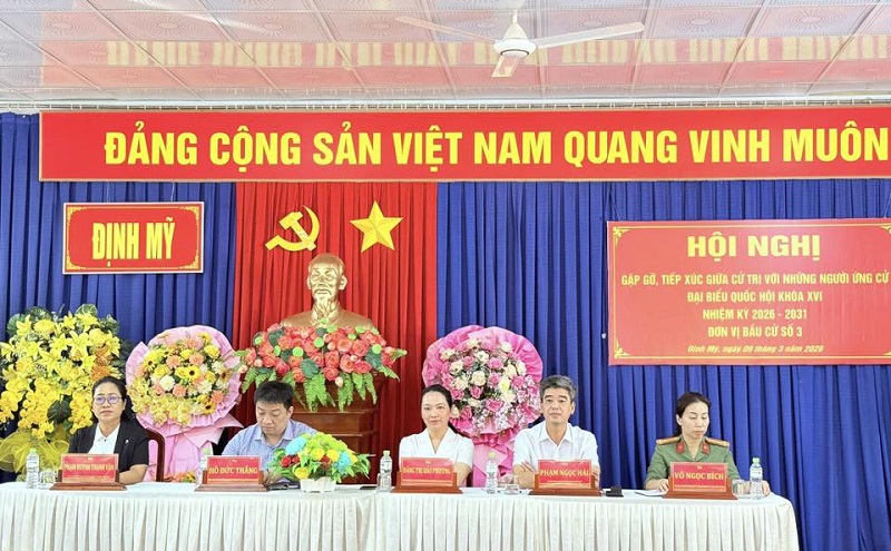 Sáng 9/3, Ban Thường trực Ủy ban MTTQ Việt Nam tỉnh An Giang phối hợp UBND tỉnh An Giang và chính quyền địa phương tổ chức Hội nghị gặp gỡ, tiếp xúc giữa cử tri với những người ứng cử đại biểu Quốc hội khóa XVI, nhiệm kỳ 2026 – 2031, đơn vị bầu cử số 3, tại xã Định Mỹ và Thoại Sơn.