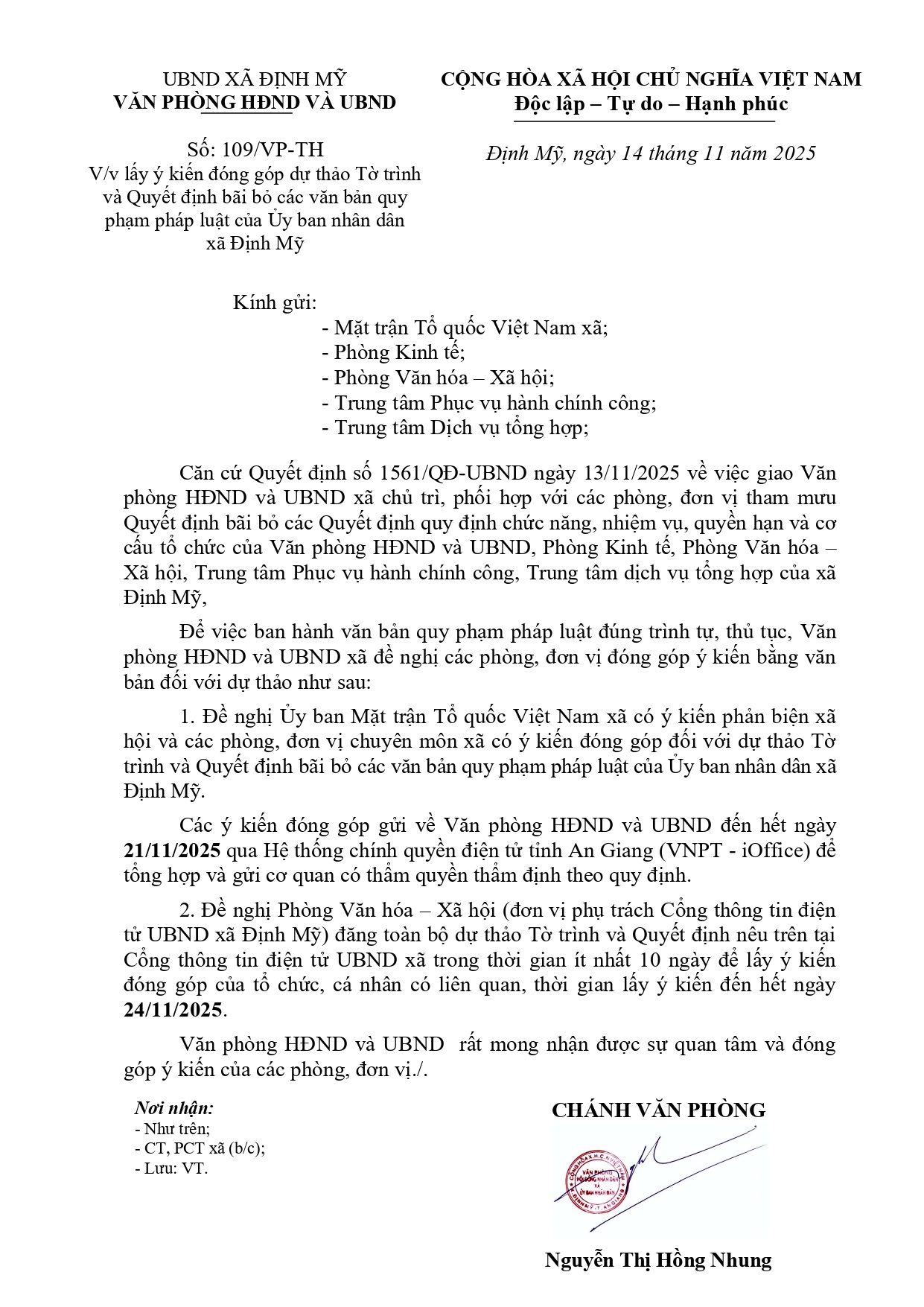 Sáng ngày 18/11/2025, Thường trực Đảng ủy xã Định Mỹ tổ chức buổi gặp mặt, chúc mừng Ủy ban Mặt trận Tổ quốc Việt Nam xã nhân kỷ niệm 95 năm Ngày Truyền thống Mặt trận Tổ quốc Việt Nam (18/11/1930 – 18/11/2025).