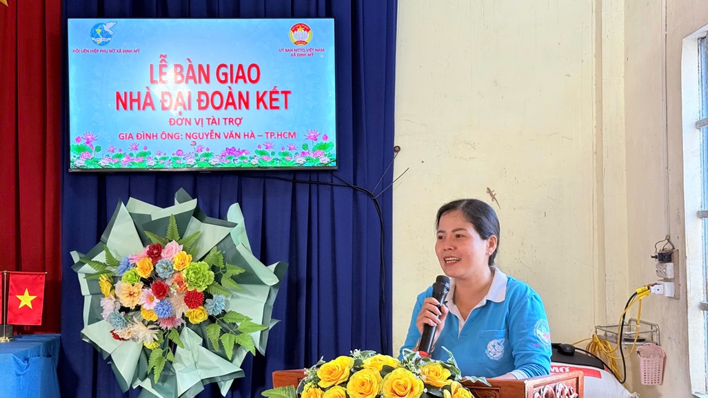 Chiều ngày 02/02/2026, trong không khí phấn khởi đón Tết Nguyên đán Bính Ngọ, Ủy ban Mặt trận Tổ quốc Việt Nam xã Định Mỹ tổ chức lễ bàn giao 10 căn nhà “Đại đoàn kết” cho các hộ gia đình nghèo, hộ có hoàn cảnh khó khăn trên địa bàn xã. Đây là hoạt động ý nghĩa do gia đình ông Nguyễn Văn Hà (Thành phố Hồ Chí Minh) tài trợ, thể hiện tinh thần sẻ chia, chung tay cùng địa phương chăm lo an sinh xã hội, giúp người dân vui Xuân, đón Tết trong những căn nhà mới khang trang.